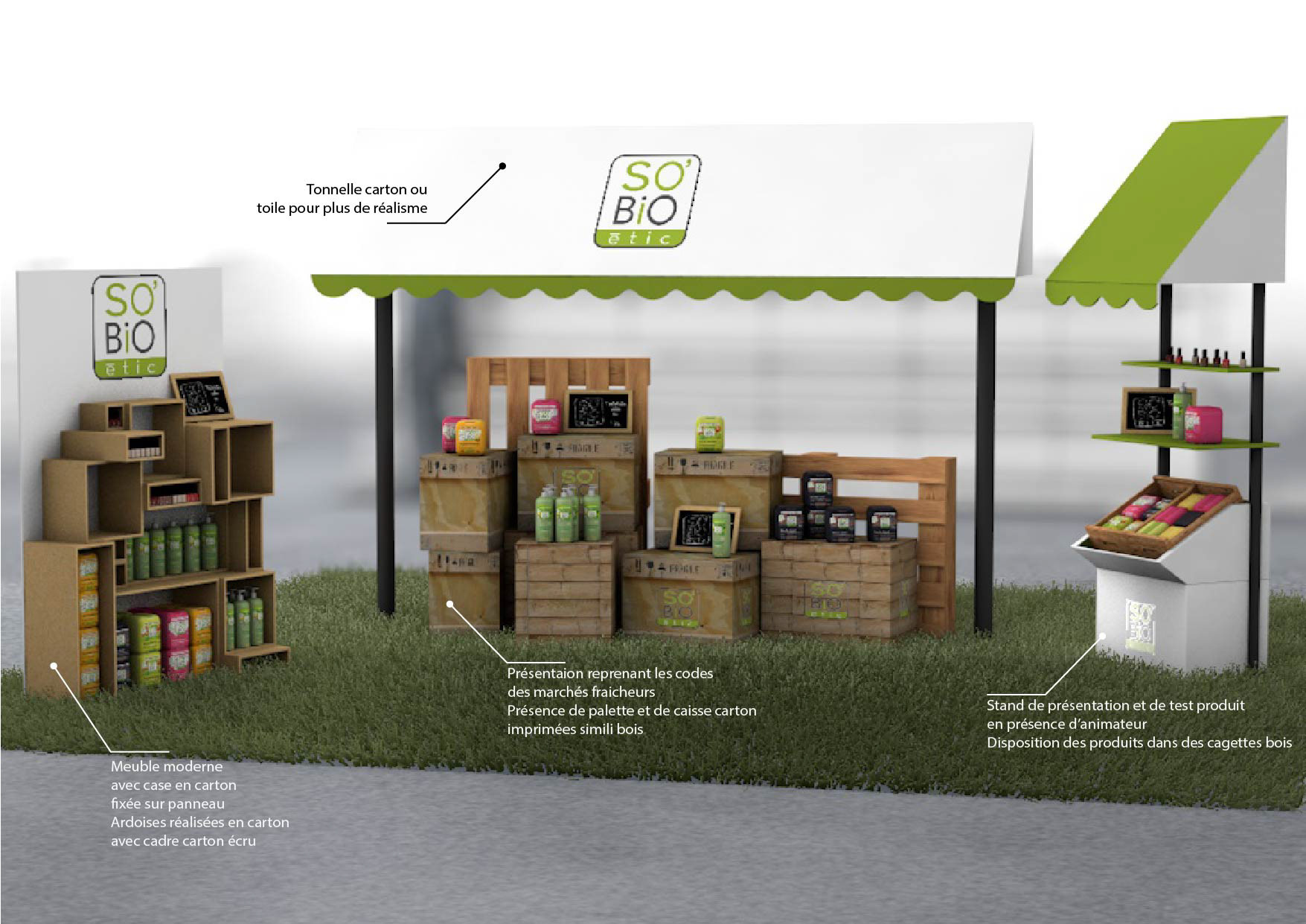 Réflexion de théâtralisation et de store in store pour la gamme So' Bio etic